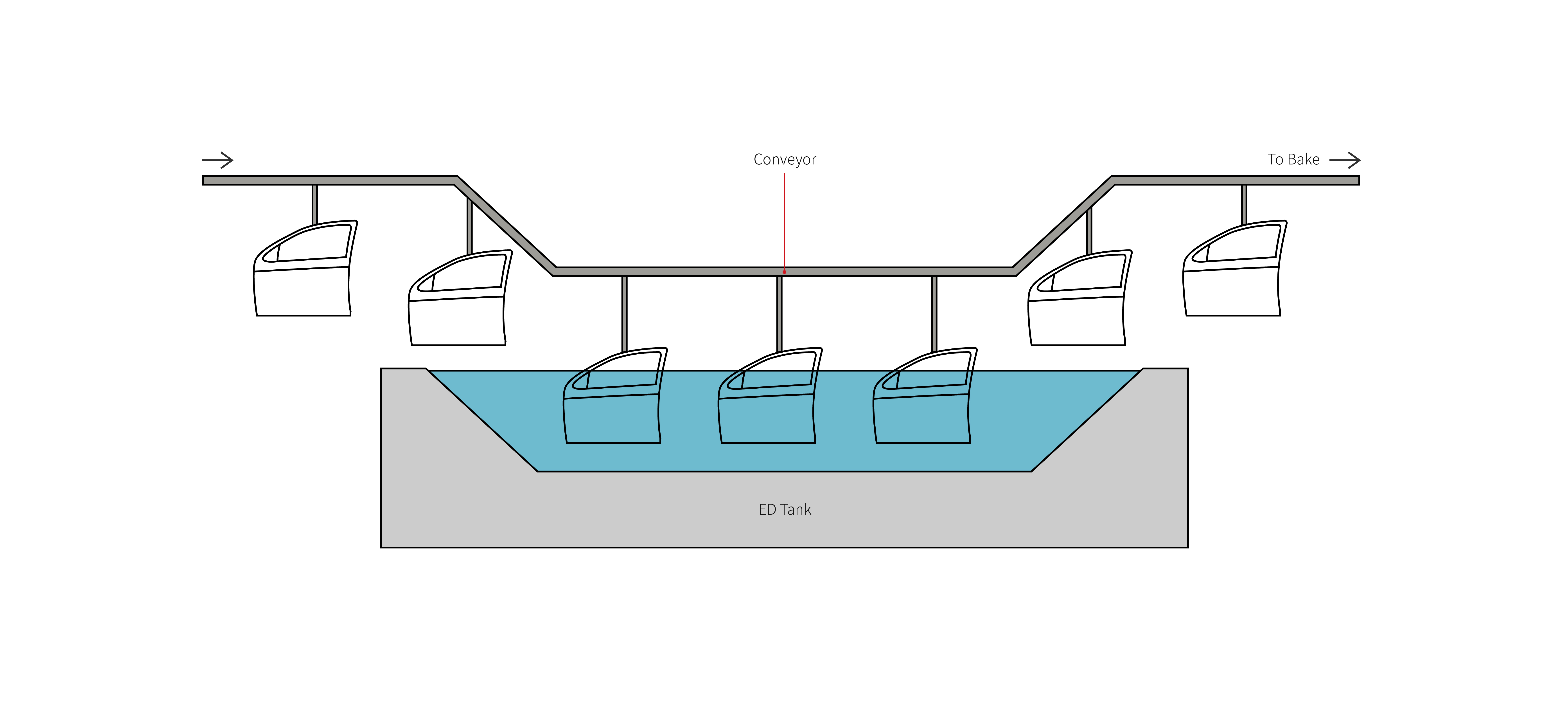 전착도장은 제품을 전착도료에 담가 외판은 물론 내부까지 균일하게 도장하는 공정이다. 금속제품에 쓰이는 도장법으로 수용성 수지 도료를 넣은 탱크속에 피도장체를 넣고 피도장체에 전류를 흘려 그 표면에 도막을 형성시키는 도장법이다. 음이온 전착도장과 양이온 전착도장으로 나눠진다. 전착도장은 붓도장이나 스프레이도장에 비해 내식성, 도착효율, 단면 마감성이 양호하고 휘발성 유기화합물(VOC)의 발생이 적은 수성도료를 사용하기 때문에 환경 친화적이어서 광범하게 활용된다. 제품 유형별 : 자동차 부품, 가전제품 및 산업기계 등 제품 파트별 : 자동차 부품 하도, 냉장고/에어컨 컴프레셔의 외곽도장 |