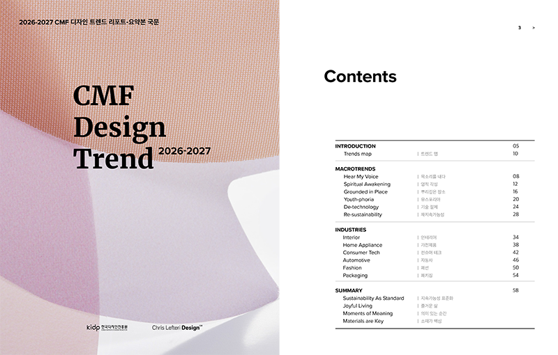 본 컨텐츠에서는 CES 전시회에 출품된 제품들의 디자인과 CMF(컬러, 머티리얼, 피니싱) 분야에서 주목할 점을 영국 트렌드 컨설팅사 스타일러스(Stylus)의 보고서를 토대로 Comfort Wellness, Joyful Play, Sustainable Innovation 등 3개의 테마로 살펴본다.