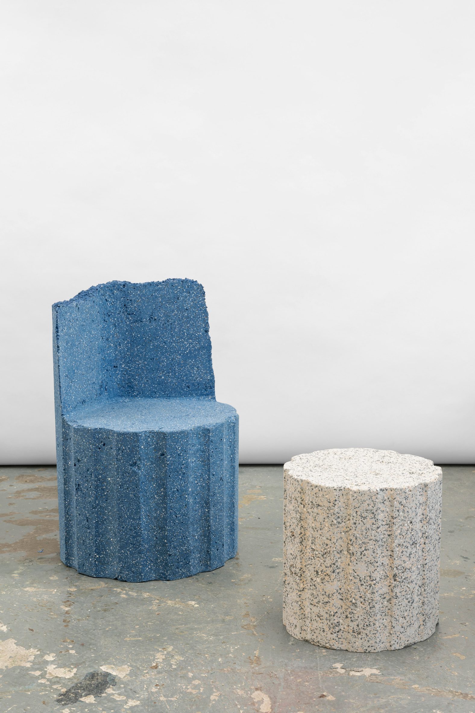 스튜디오는 “이 작업은 고무에 안료를 입혀 화강암에서 볼 수 있는 다양한 색조를 만든 다음, 이를 입히고 혼합하여 단순한 기하학적 형태로 주조하는 것으로 시작됩니다. 그런 다음 아치나 기둥과 같이 풍화된 건축 요소를 연상시키도록 정교하게 손으로 조각됩니다. 이는 스툴, 안락 의자, 커피 테이블, 벤치, 콘솔, 화분 등 다양한 기능을 갖춘 가구로 완성됩니다.” 라고 설명했다.